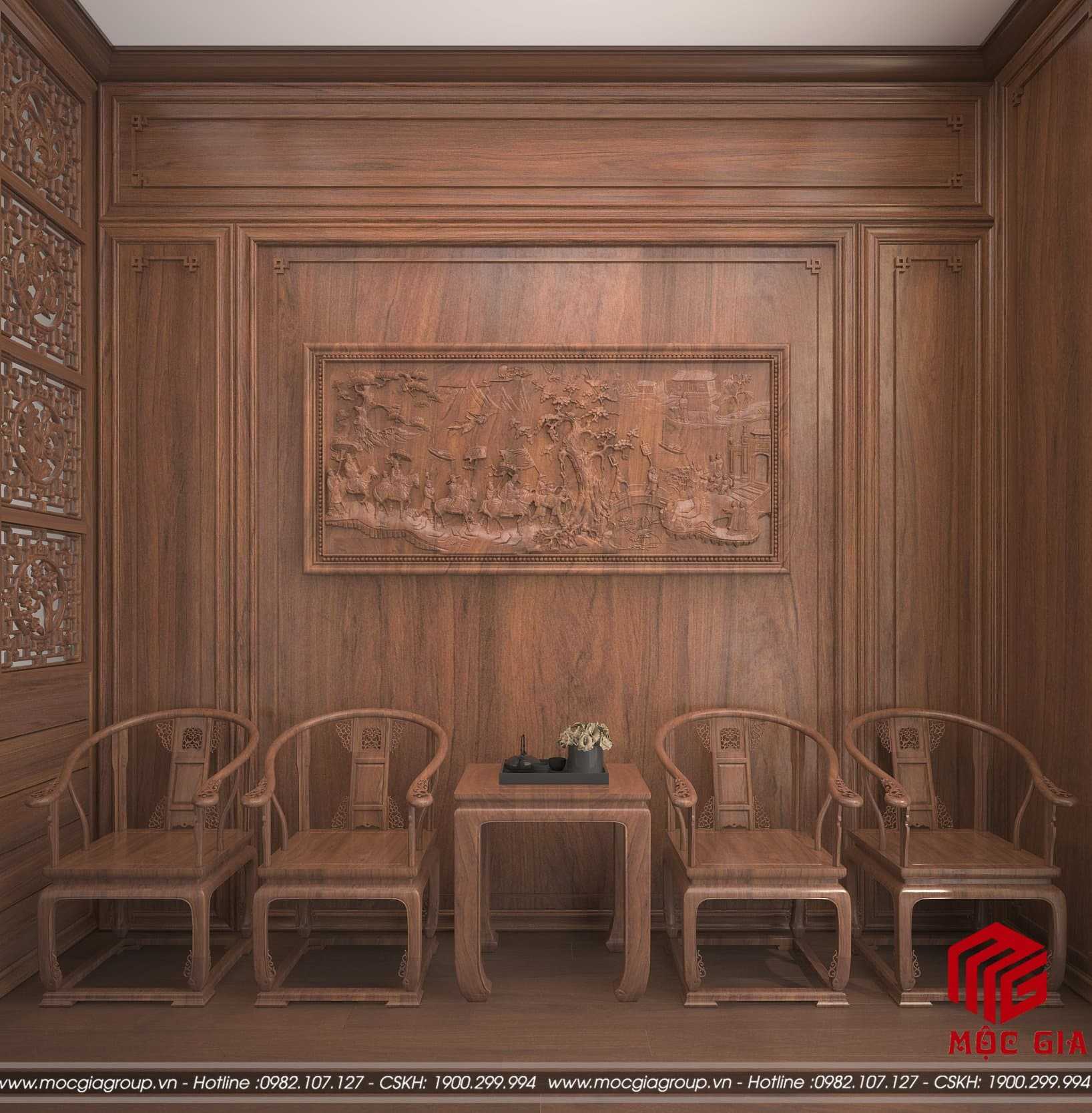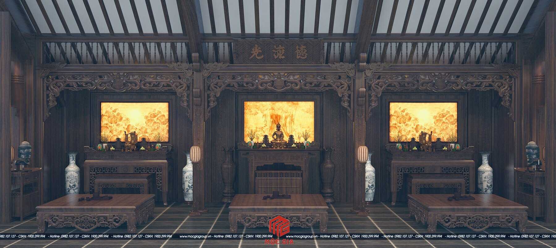 Vách ngăn phòng thờ bằng gỗ
